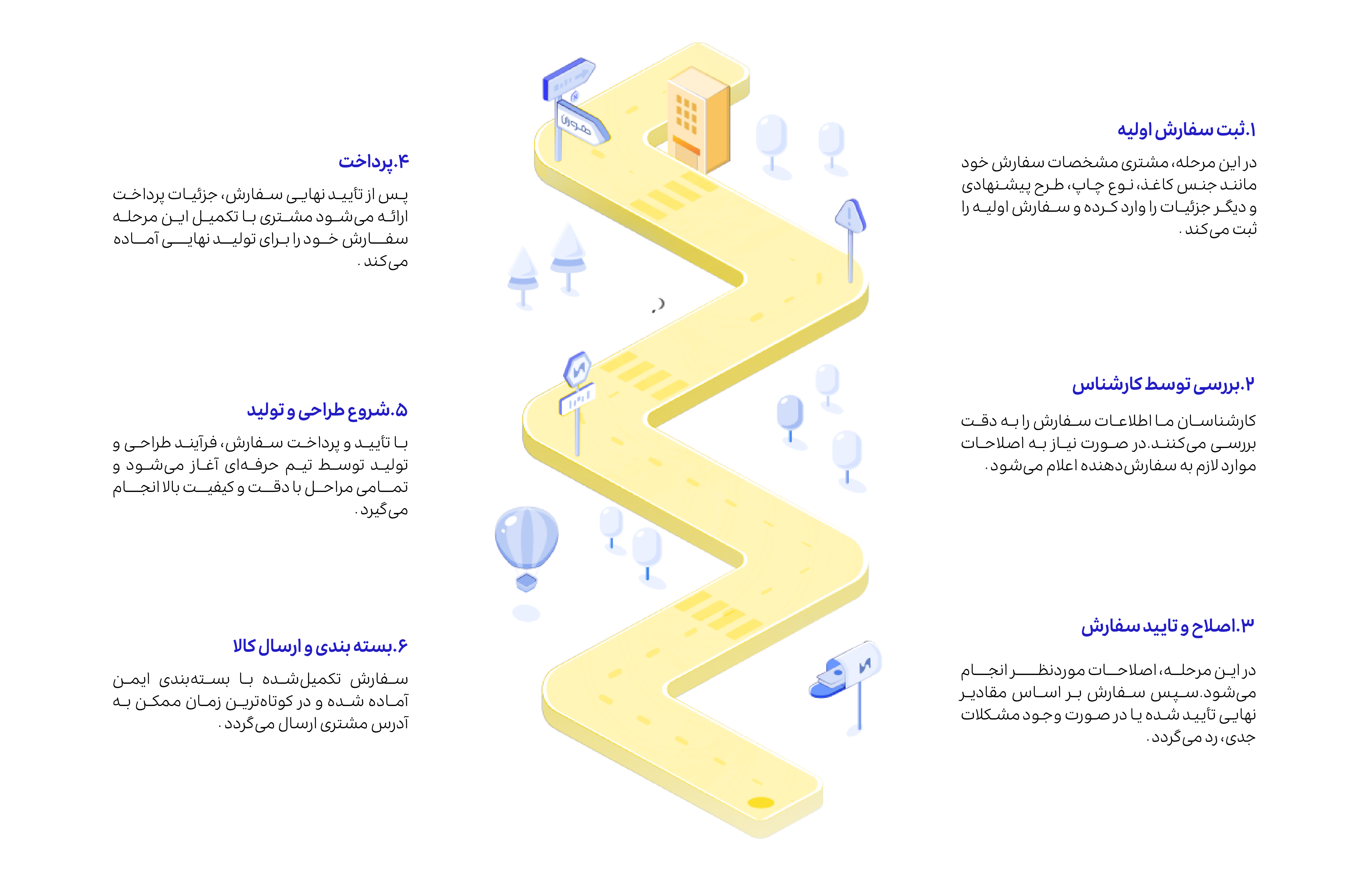 | تیراژ سفارش | حداقل 200 عدد، حداکثر 1000 عدد | تیراژ مناسب باعث کاهش هزینه و کیفیت بهتر میشود |